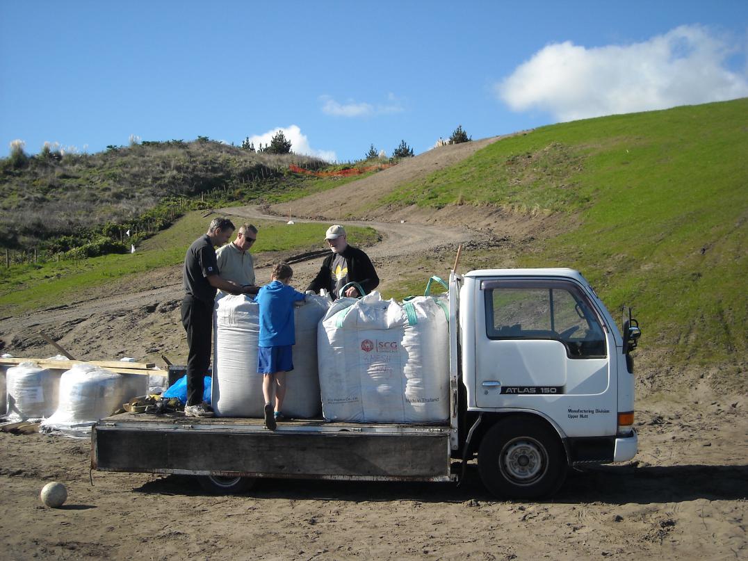 In this case only 4 bags of 500kg were used to give a shallow coat. The amount can be varied depending on the desired surface characteristics. Delivery can also be in bulk by truck.